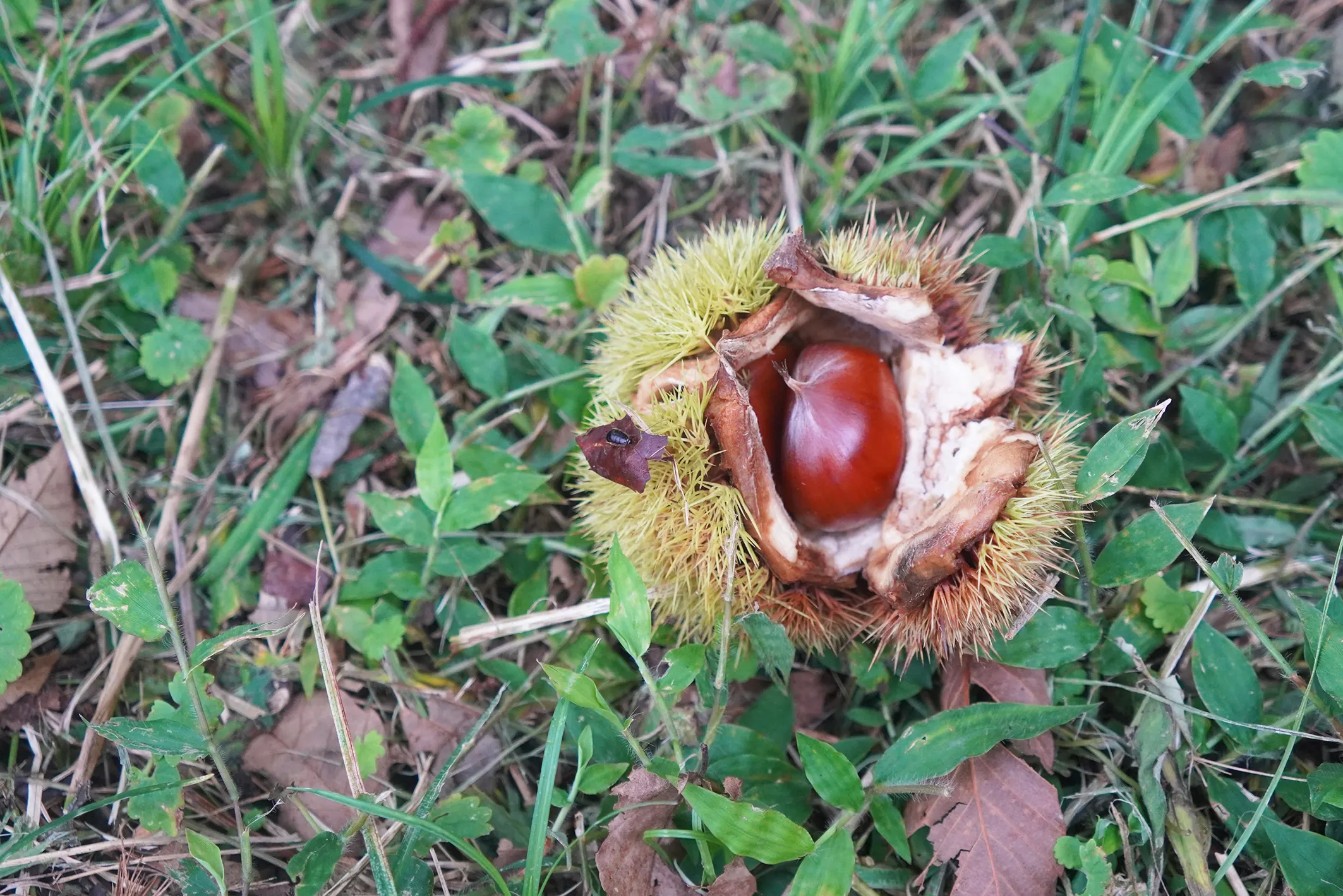 栗拾いの季節、畑ではハーブが元気いっぱい