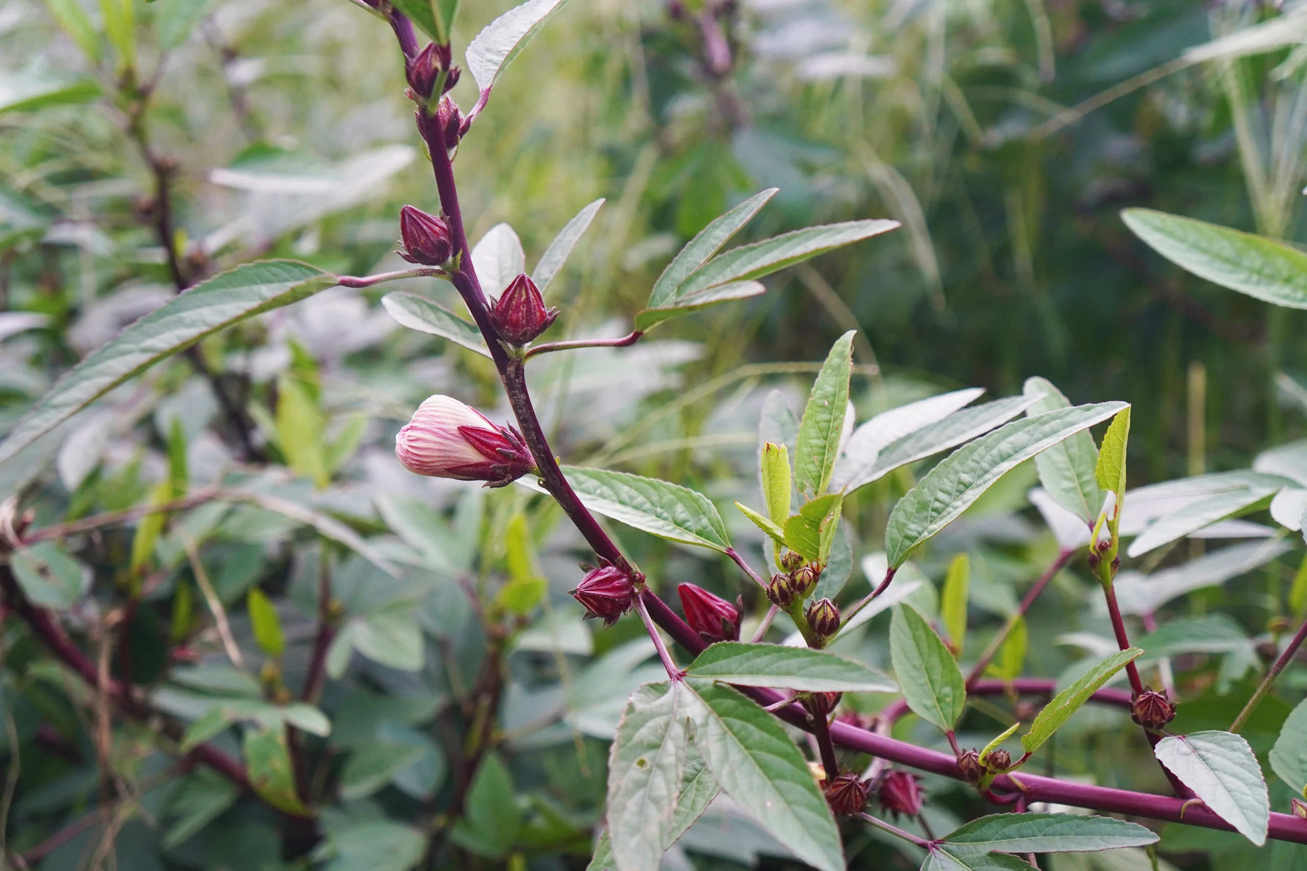 「ハイビスカスに似た花のローゼル。熟したガクはジャムやハーブティーとしていただきます。」