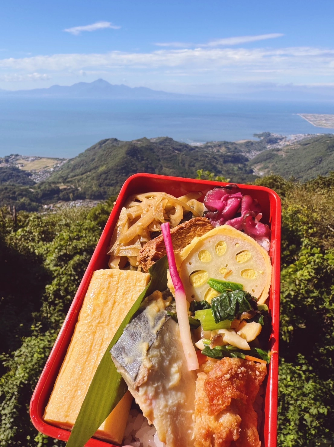 金峰山の頂上の絶景を眺めながらみんなでのり弁をいただきまーす