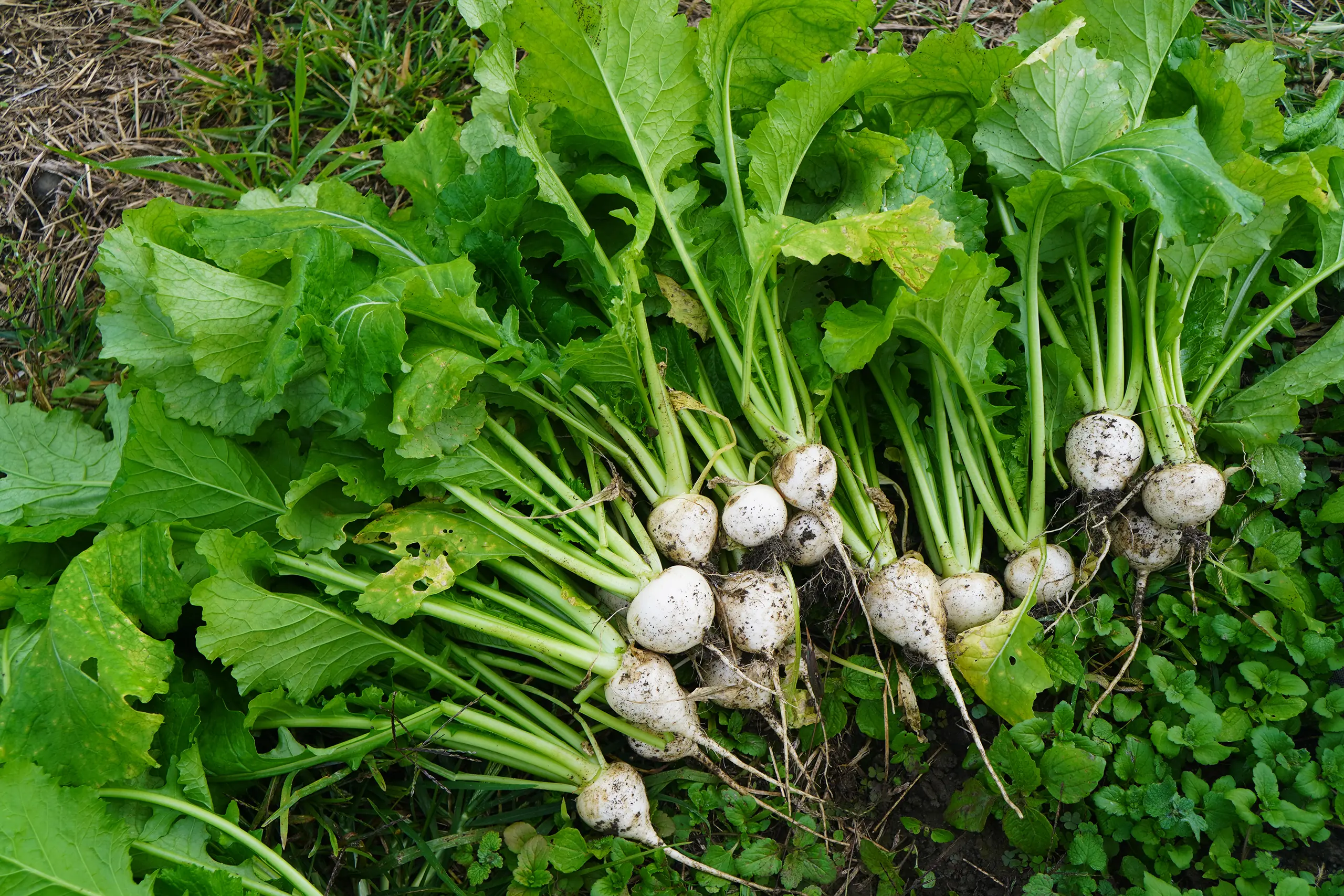 「収獲したみやま子かぶ。ゴルフボールほどの大きさが収穫適期。一年で一番おいしいとき。」