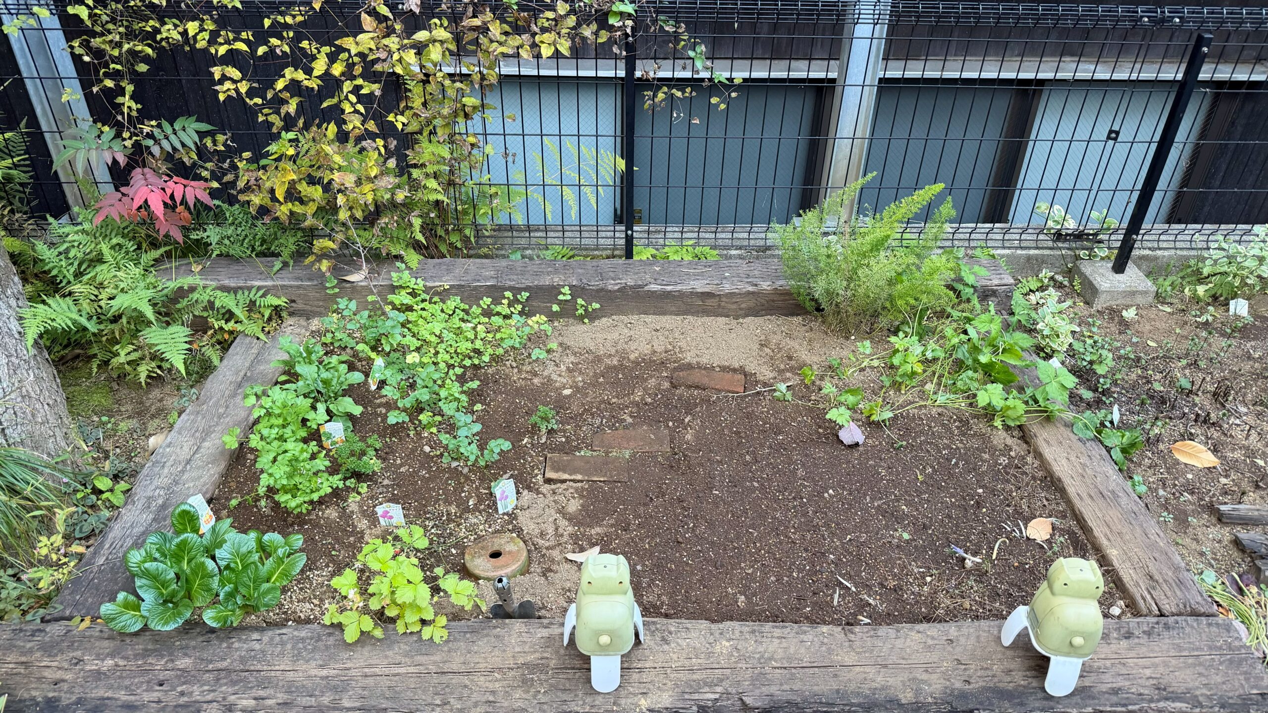大葉たちを全部抜いて、チューリップの球根を植えました。