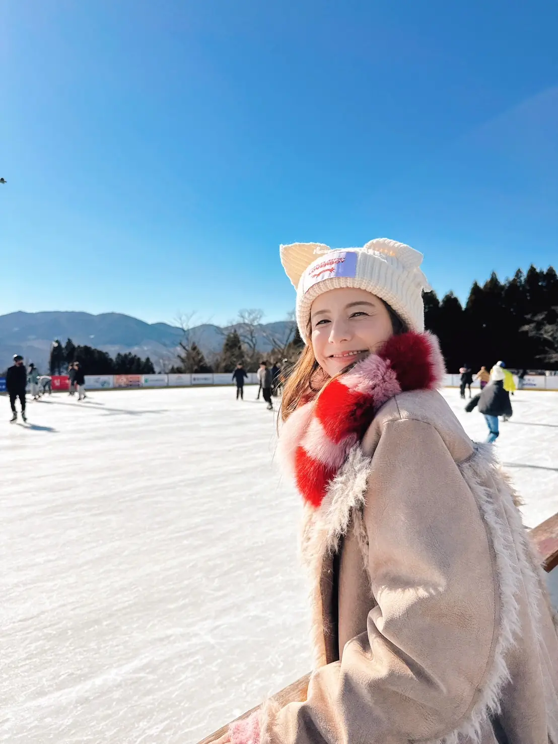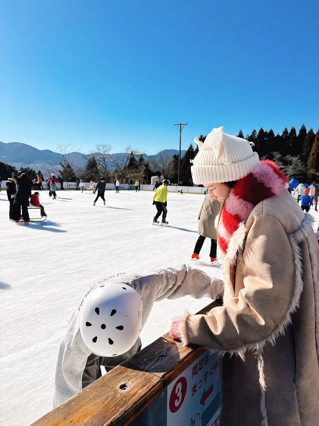 由布岳と鶴見岳の麓に広がるタテ30m×ヨコ60mの九州最大級の屋外アイススケートリンク!